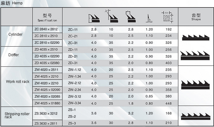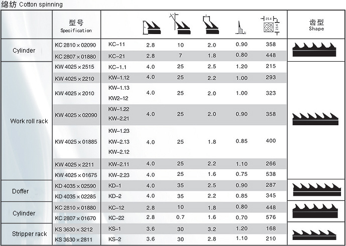 Cotton and bast fibre spinning carding machine used metal card clothing